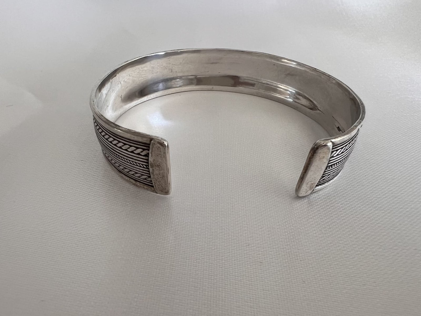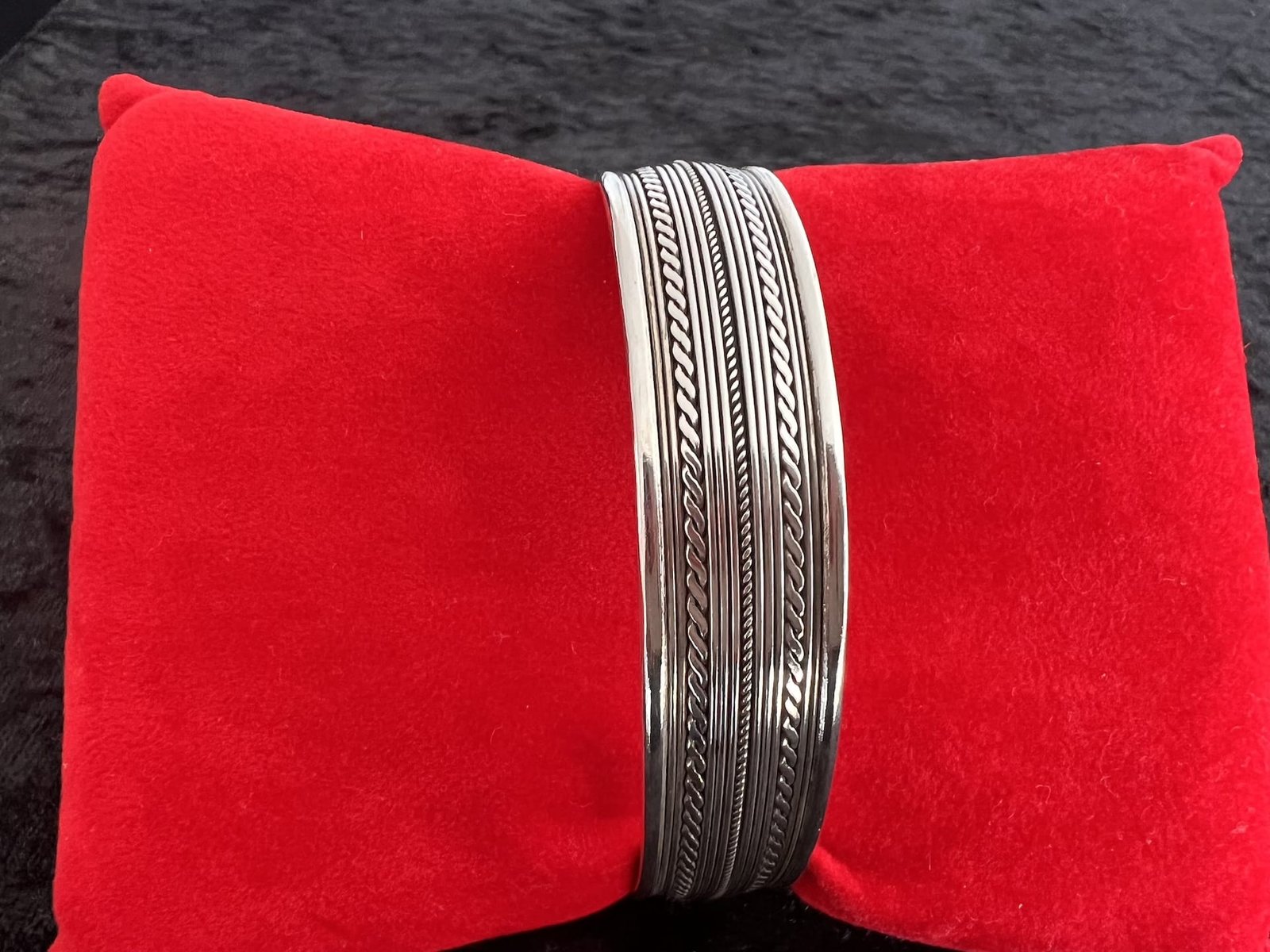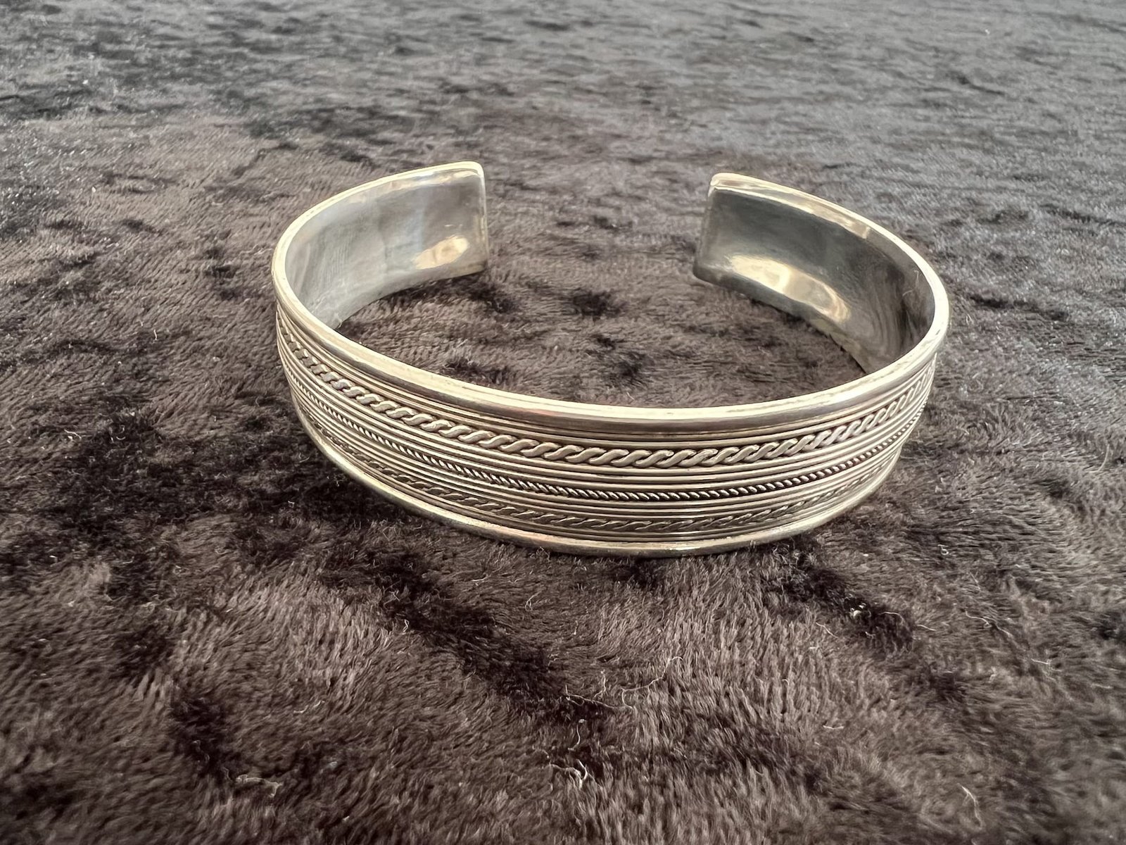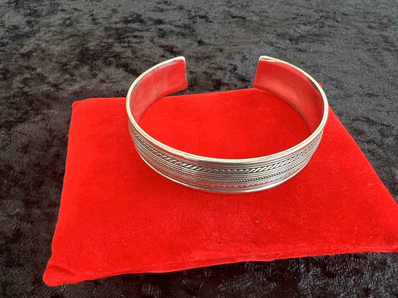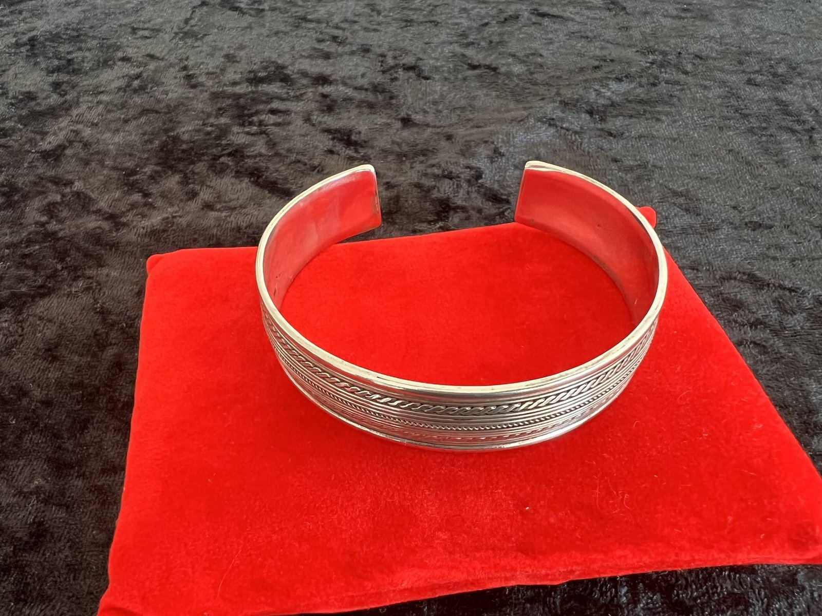 Der Armreifen ist offen gearbeitet und passt sich schmalen bis mittleren Handgelenken flexibel an. Durch die leicht justierbare Öffnung lässt er sich angenehm anlegen und trägt sich besonders komfortabel. Ein authentisches, stilvolles Accessoire für alle, die hochwertige Handwerkskunst und schlichte Eleganz lieben.
