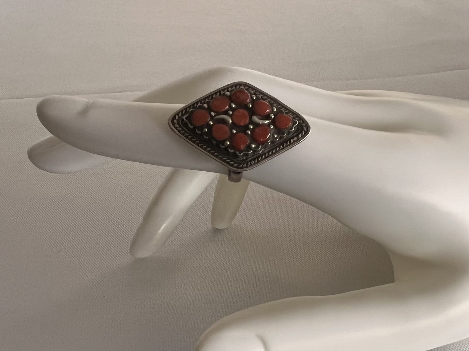 Handgefertigter Silber Ring In Rautenform aus Marokko mit Karneol Steinen. Ein einzigartiger Hingucker für selbstbewusste Frauen – perfekt für Alltag & besondere Anlässe.