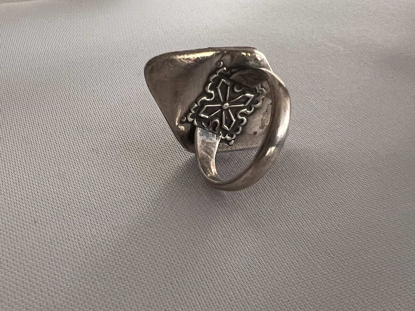 Handgefertigter Silberring in Rautenform aus Marokko mit Karneol Steinen – ein Einzelstück für starke Frauen